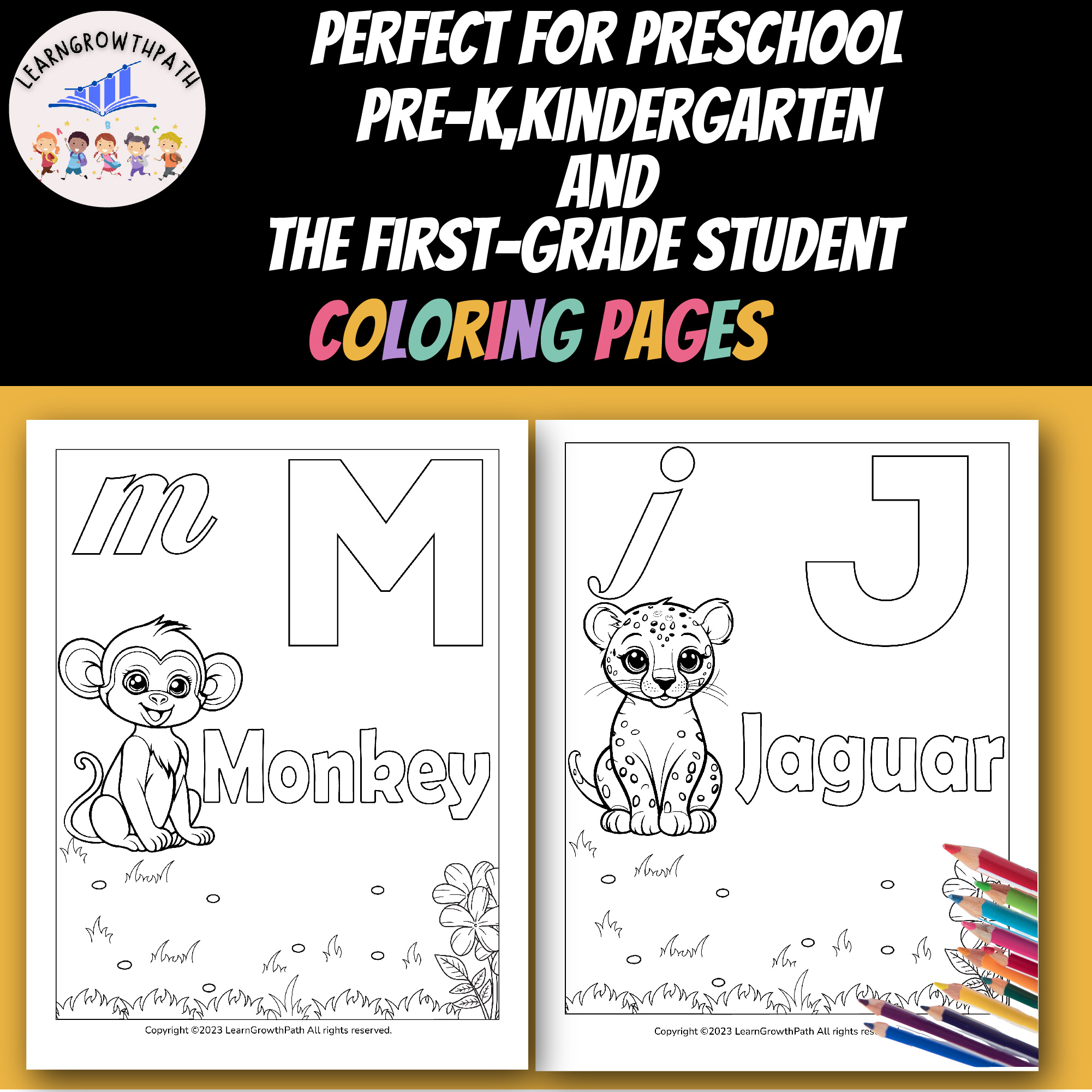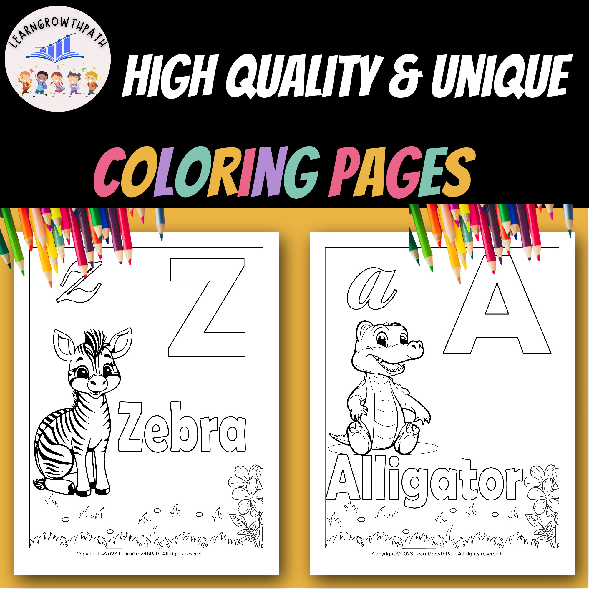 Each page showcases a delightful animal illustration that corresponds to a specific letter of the alphabet. From the adorable alligator for 'A' to the majestic zebra for 'Z,' these coloring pages will ignite your child's curiosity and foster their letter recognition skills.
